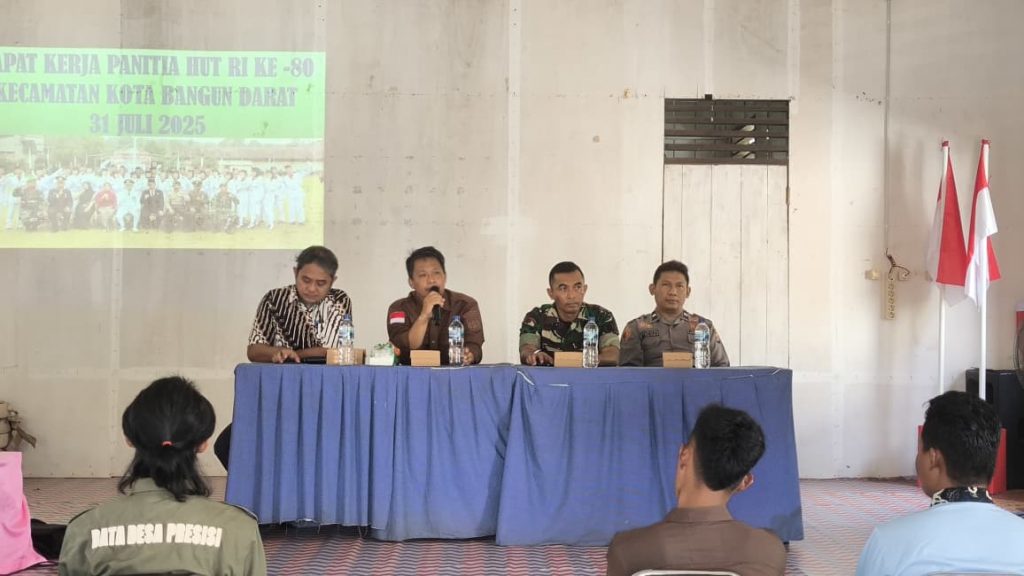 Kota Bangun Darat, Kamis, 31 Juli 2025 – Dalam rangka menyambut Hari Ulang Tahun Kemerdekaan Republik Indonesia ke-80, Pemerintah Kecamatan Kota Bangun Darat menggelar rapat kerja bersama panitia pelaksana yang bertempat di Gedung BPU Desa Kedang Ipil.