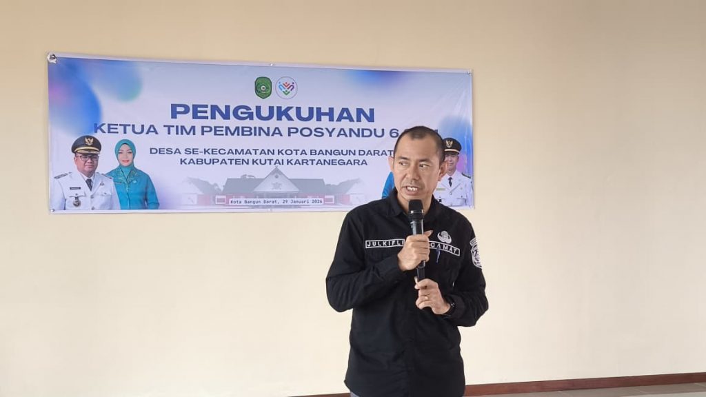 Kota Bangun Darat, Kamis 29 Januari 2026 — Ketua Tim Pembina Posyandu 6 Standar Pelayanan Minimal (SPM) Desa se-Kecamatan Kota Bangun Darat resmi dikukuhkan oleh Ketua Posyandu 6 SPM Kecamatan Kota Bangun Darat, Sarina Julkifli. Pengukuhan berlangsung di Gedung Pertemuan Kecamatan Kota Bangun Darat.